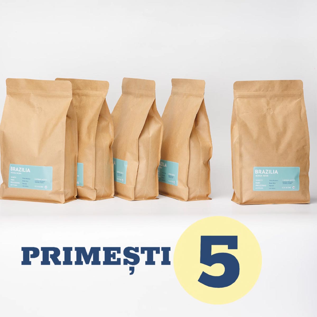 Pachet Promoțional: 4+1 Brazilia Bossa Nova Cumperi 4 pungi de cafea Brazilia Bossa Nova de 1Kg, primești a-5-ea pungă gratuit!